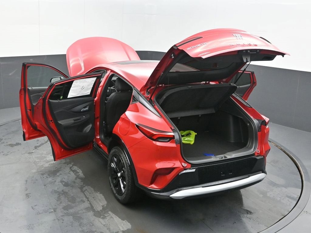 Red 2026 Buick Envista Sport Touring FWD 6-Speed Automatic ECOTEC 1.2L Turbo 2 USB Ports (1 Type-A, 1 Type-C), 2-Way Power Driver Lumbar Control, 3.50 Final Drive Axle Ratio, 4-Way Manual Front Passenger Seat Adjuster, 4-Wheel Disc Brakes, 6 Speakers, 6-Way Manual Driver Seat Adjuster, 8-Way Power Driver Seat Adjuster, ABS brakes, Air Conditioning, All-Weather Floor Liners, Alloy wheels, AM/FM radio: SiriusXM, Auto High-beam Headlights, Automatic temperature control, Brake assist, Bumpers: body-color, Cargo Liner, Compass, Convenience I Package, Delay-off headlights, Driver door bin, Driver vanity mirror, Dual front impact airbags, Dual front side impact airbags, Electronic Stability Control, Emergency communication system: OnStar, Exterior Parking Camera Rear, Front anti-roll bar, Front Bucket Seats, Front Center Armrest, Front Doors Keyless Open, Front reading lights, Front wheel independent suspension, Fully automatic headlights, Heated door mirrors, Heated Driver and Front Passenger Seats, Heated Steering Wheel, Illuminated entry, Interior Floor Liner Packages, Leatherette Seat Trim, Low tire pressure warning, Occupant sensing airbag, Outside temperature display, Overhead airbag, Overhead console, Panic alarm, Passenger door bin, Passenger vanity mirror, Power door mirrors, Power steering, Power Tilt-Sliding Moonroof with Manual Sunshade, Power windows, Premium 6-Speaker Audio System Feature, Radio data system, Radio: AM/FM Stereo Audio System, Rear Parking Sensors, Rear window defroster, Remote keyless entry, Security system, SiriusXM Trial Subscription, Speed control, Split folding rear seat, Steering wheel mounted audio controls, Tachometer, Telescoping steering wheel, Tilt steering wheel, Traction control, Trip computer, Turn signal indicator mirrors, Variably intermittent wipers, Wheels: 18 Black Painted Aluminum, Wireless Apple CarPlay/Wireless Android Auto.