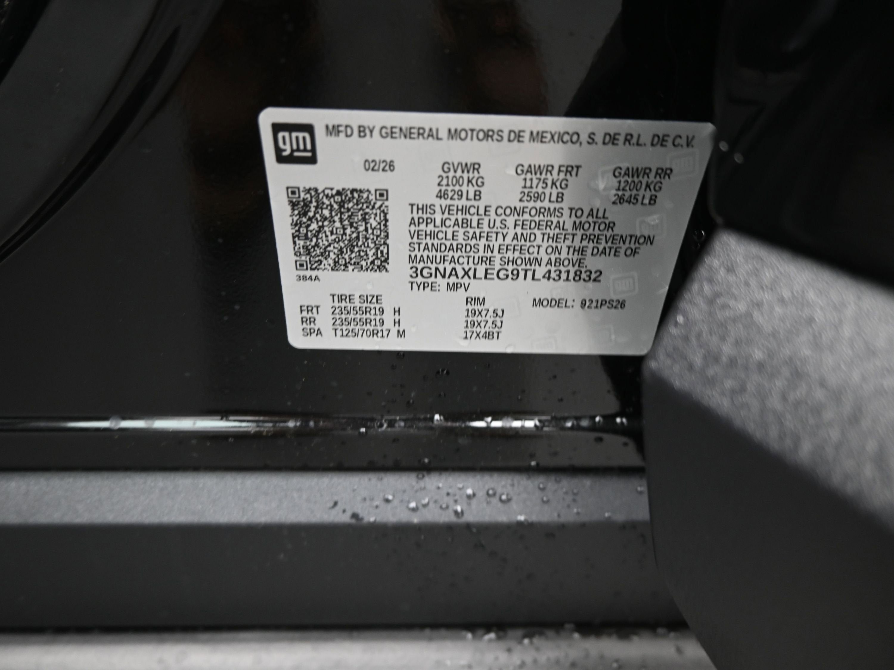 - Tires, 235/55R19, all-season blackwall
