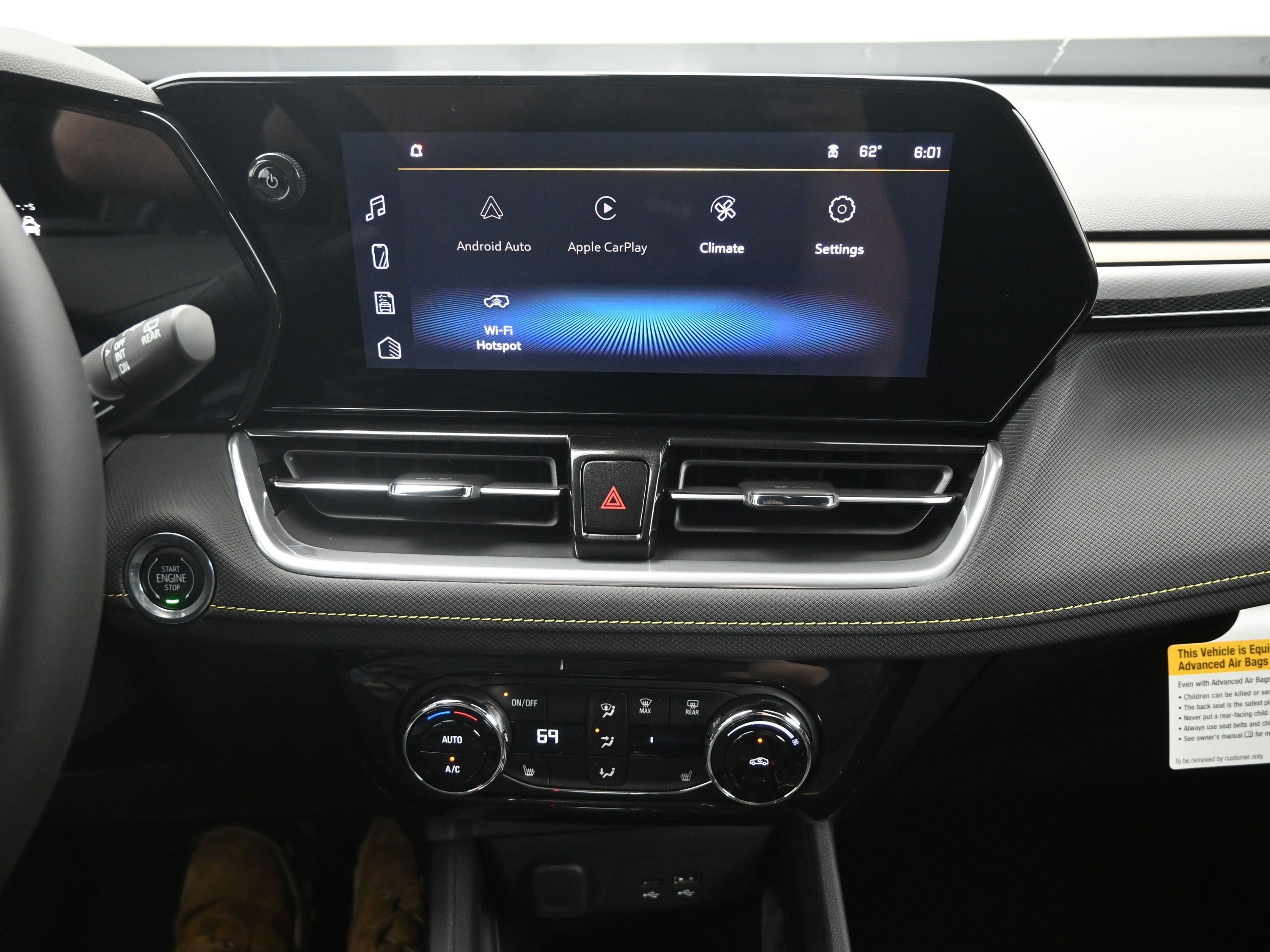 - Audio system, 11" diagonal HD color touchscreen, AM/FM stereo. Additional features for compatible phones include: Bluetooth audio streaming for 2 active devices, voice command pass-through to phone, wireless Apple CarPlay and wireless Android Auto capable