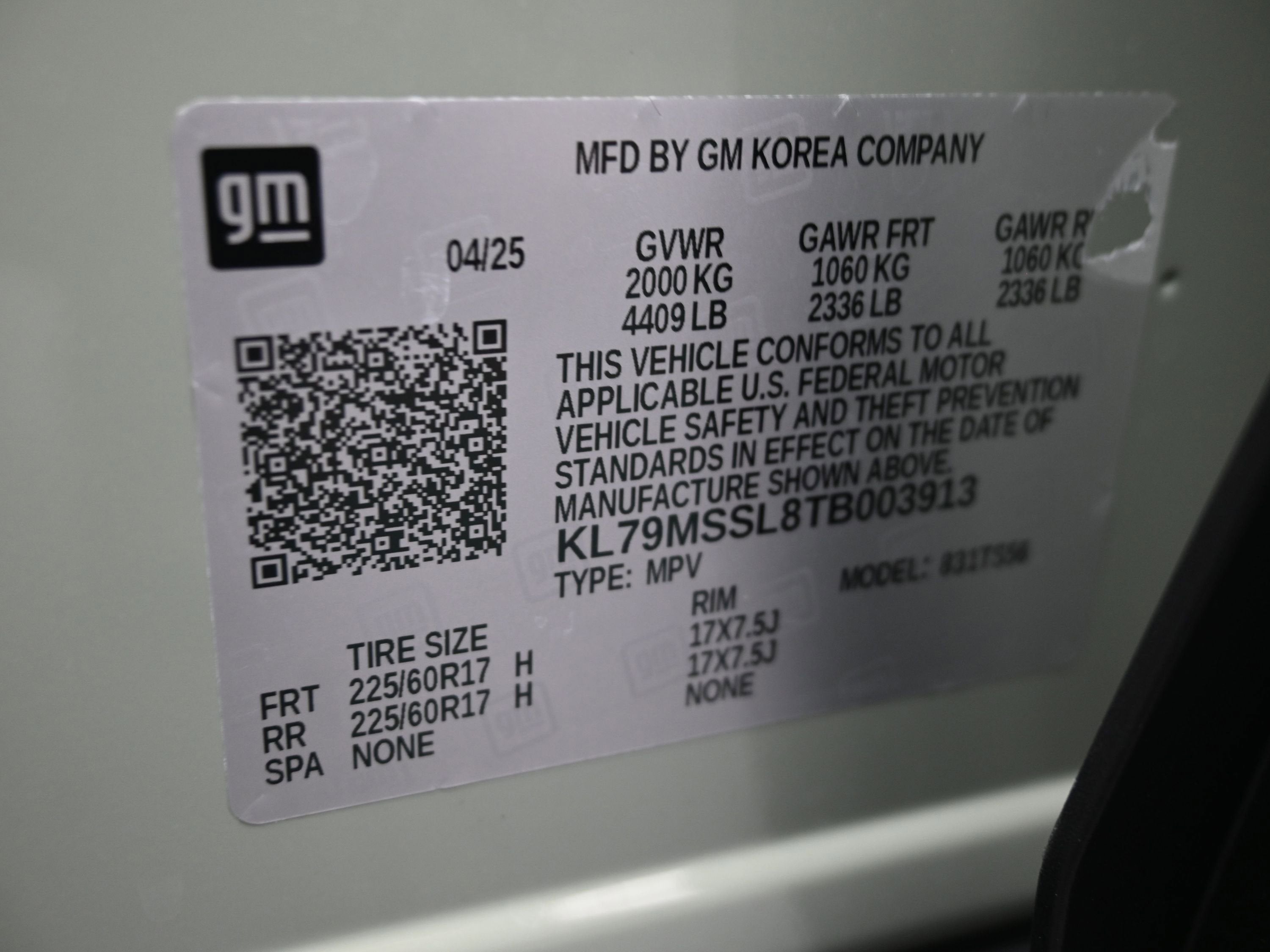 - GVWR, 4409 lbs. (2000 kg) (AWD models.)