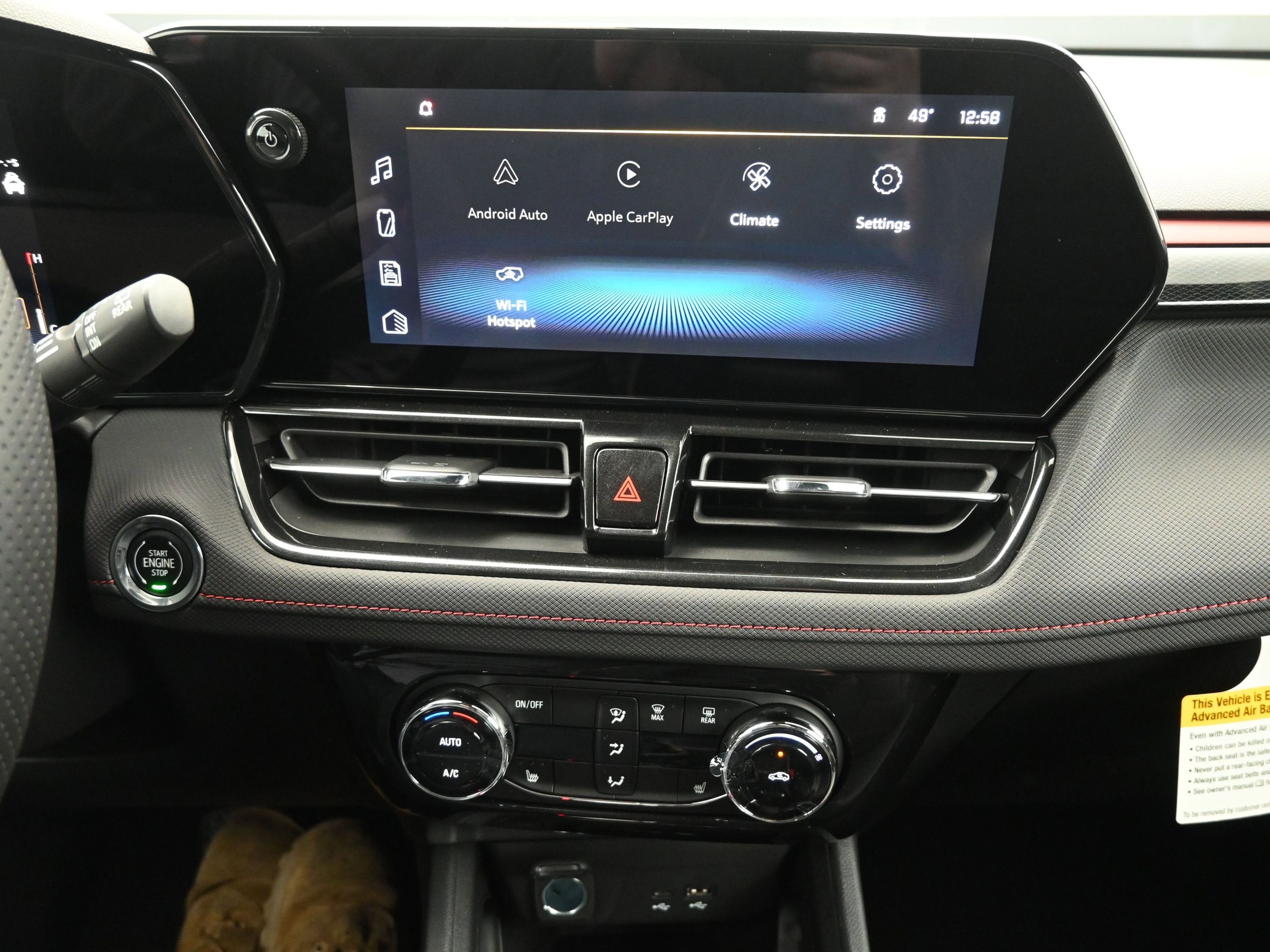 - Audio system, 11" diagonal HD color touchscreen, AM/FM stereo. Additional features for compatible phones include: Bluetooth audio streaming for 2 active devices, voice command pass-through to phone, wireless Apple CarPlay and wireless Android Auto capable