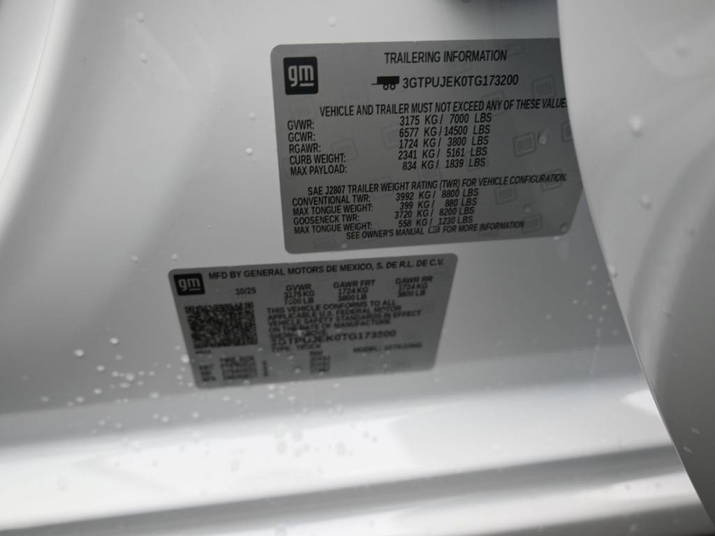 Priced below KBB Fair Purchase Price! Summit White 2026 GMC Sierra 1500 Elevation 4WD 8-Speed Automatic 2.7L I4 Turbocharged DOHC 16V LEV3-SULEV30 310hp 8-Speed Automatic, 4WD, Black Cloth, 10-Way Power Driver Seat Adjuster with Lumbar, 120-Volt Bed Mounted Power Outlet, 120-Volt Interior Power Outlet, 2 Charge/Data USB Ports, 2 Type-C Charge-Only Rear USB Ports, 220 Amp Alternator, 3.42 Rear Axle Ratio, 4-Way Manual Passenger Seat Adjuster, 4-Wheel Disc Brakes, 6 Speakers, 6-Speaker Audio System Feature, ABS brakes, Air Conditioning, Alloy wheels, AM/FM radio: SiriusXM with 360L, Apple CarPlay/Android Auto, Auto High-beam Headlights, Auto-Locking Rear Differential, Automatic Emergency Braking, Automatic temperature control, Body Color Header with Gloss Black Mesh Grille Bars, Brake assist, Buckle to Drive, Bumpers: body-color, Cloth Seat Trim, Color-Keyed Carpeting Floor Covering, Compass, Deep-Tinted Glass, Delay-off headlights, Driver door bin, Driver vanity mirror, Dual front impact airbags, Dual front side impact airbags, Electric Rear-Window Defogger, Electronic Stability Control, Emergency communication system: OnStar, Following Distance Indicator, Forward Collision Alert, Front 40/20/40 Split-Bench Seat, Front anti-roll bar, Front Center Armrest w/Storage, Front dual zone A/C, Front fog lights, Front Frame-Mounted Black Recovery Hooks, Front Pedestrian Braking, Front reading lights, Front Rubberized-Vinyl Floor Mats, Front wheel independent suspension, Fully automatic headlights, HD Rear Vision Camera, Heated door mirrors, Heated Driver and Front Outboard Passenger Seating, Heated front seats, Heated steering wheel, High Capacity Suspension Package, Hitch Guidance, Illuminated entry, Integrated Trailer Brake Controller, IntelliBeam Automatic High Beam on/Off, Keyless Open and Start, Lane Keep Assist with Lane Departure Warning, LED Cargo Area Lighting, Low tire pressure warning, Manual Tilt-Wheel and Telescoping Steering Column, Navigation System, Occupant sensing airbag, OnStar Services Capable, Outside temperature display, Overhead airbag, Overhead console, Panic alarm, Passenger door bin, Passenger vanity mirror, Power Door Locks, Power door mirrors, Power driver seat, Power Front Windows with Driver Express Up/Down, Power Front Windows with Passenger Express Down, Power Rear Windows with Express Down, Power steering, Power windows, Push Button Start, Radio data system, Radio: Premium GMC Infotainment Audio System, Rear reading lights, Rear Rubberized-Vinyl Floor Mats, Rear seat center armrest, Rear step bumper, Rear window defroster, Remote keyless entry, Remote Vehicle Starter System, Security system, SiriusXM with 360L Trial Subscription, Speed control, Speed-sensing steering, Split folding rear seat, Steering Wheel Audio Controls, Steering wheel mounted audio controls, Tachometer, Telescoping steering wheel, Theft Deterrent System (unauthorized Entry), Tilt steering wheel, Traction control, Trailering Package, Trip computer, Variably intermittent wipers, Voltmeter, Wheels: : 20 x 9 High Gloss Black Painted Aluminum, Wi-Fi Hotspot Capable, Wireless Apple CarPlay/Wireless Android Auto, 8-Speed Automatic, 4WD, Black Cloth.Recent Arrival!