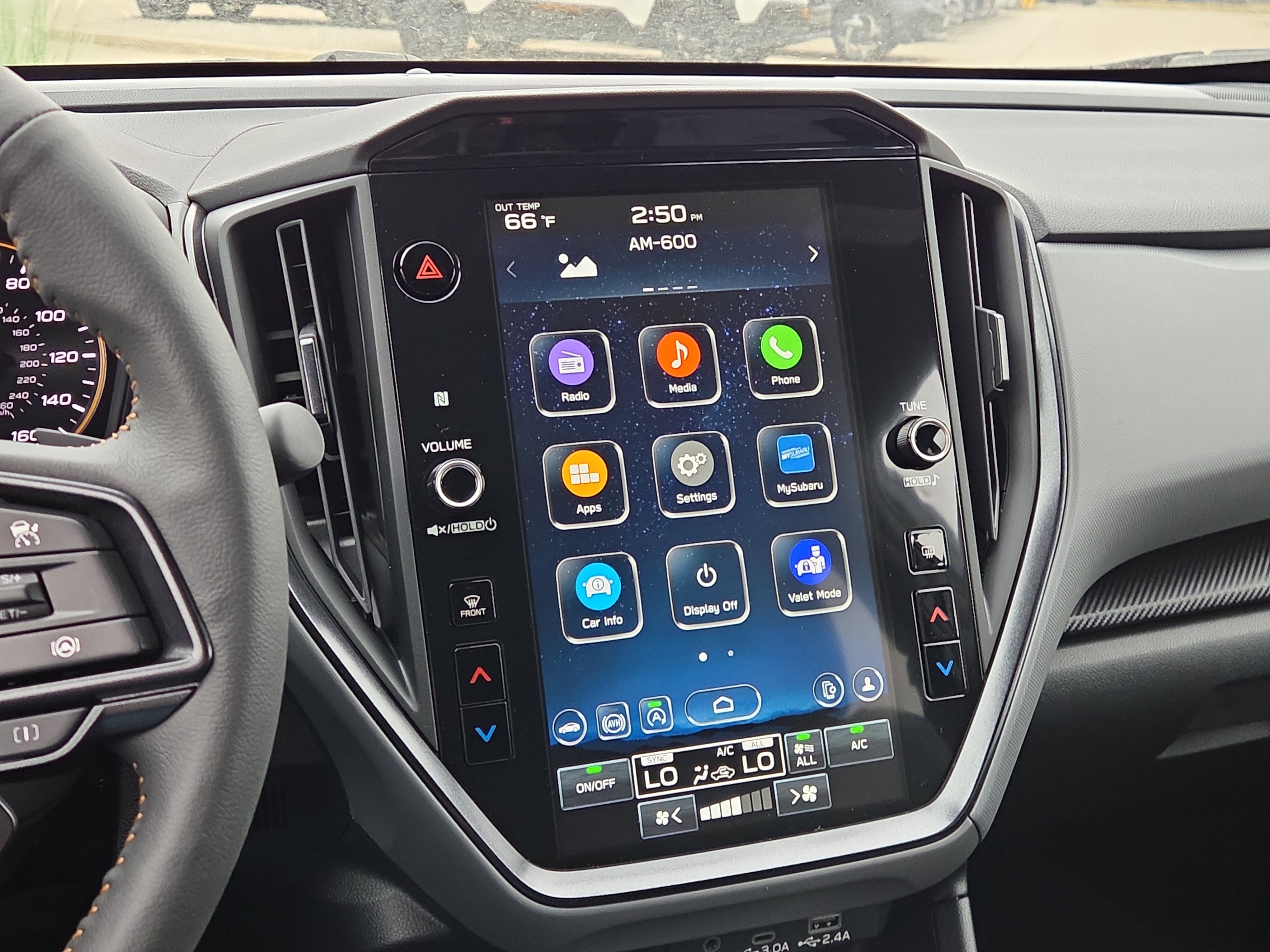 - Radio: Subaru 11.6" Multimedia Plus System -inc: AM/FM stereo, HD Radio, multi-touch gesture high resolution display screen, voice activated controls, Bluetooth® audio streaming and hands-free phone connectivity, Bluetooth® hands-free SMS text messaging connectivity, iPod control capability, smartphone integration: wired and wireless Android Auto w/full screen view and wireless Apple CarPlay w/full screen view, USB and Over The Air (OTA) audio system update, steering wheel audio system and Bluetooth® control switches, 6 speakers (2 dash panel tweeter, 2 front door and 2 rear door), illuminated 3.5mm auxiliary input jack, illuminated front USB A and C input/charge ports, connected services operation indicator, SOS emergency assistance: red SOS button and enhanced roadside assistance: blue i-button