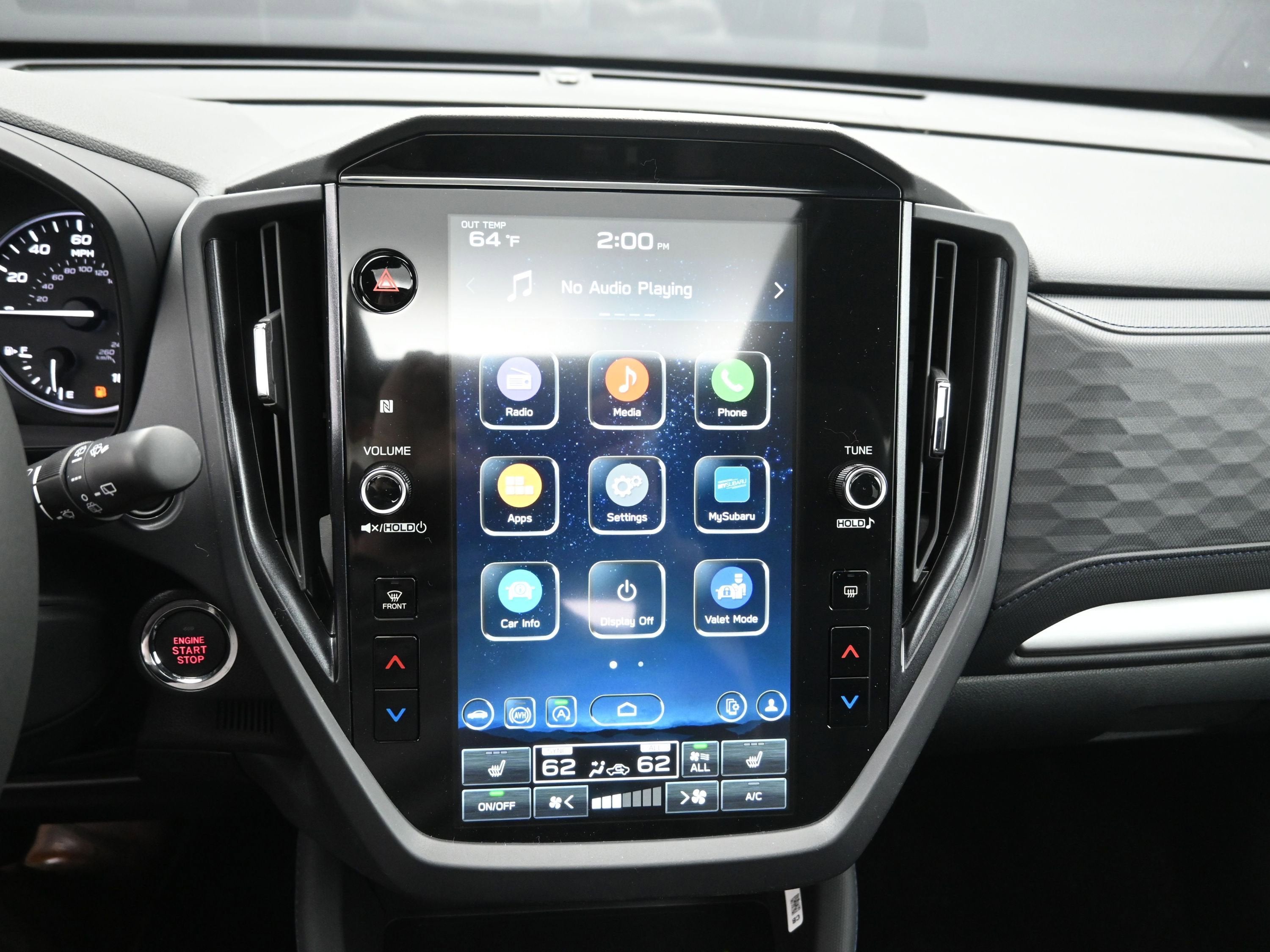 - Radio: Subaru 11.6" Multimedia Plus System -inc: valet mode, integrated center information display, AM/FM stereo HD Radio, multi-touch gesture high resolution display screen, voice activated controls, Bluetooth® audio streaming and hands-free phone connectivity w/SMS text messaging (refer to Subaru.com for cellphone compatibility), iPod control capability, smartphone integration: Android Auto and Apple CarPlay w/full screen view and wireless connection, SiriusXM satellite radio w/360L (free 4-month trial subscription included), USB and Over The Air (OTA) audio system update, steering wheel controls, 6 speakers, 3.5mm auxiliary input jack and roof mounted audio and satellite antenna