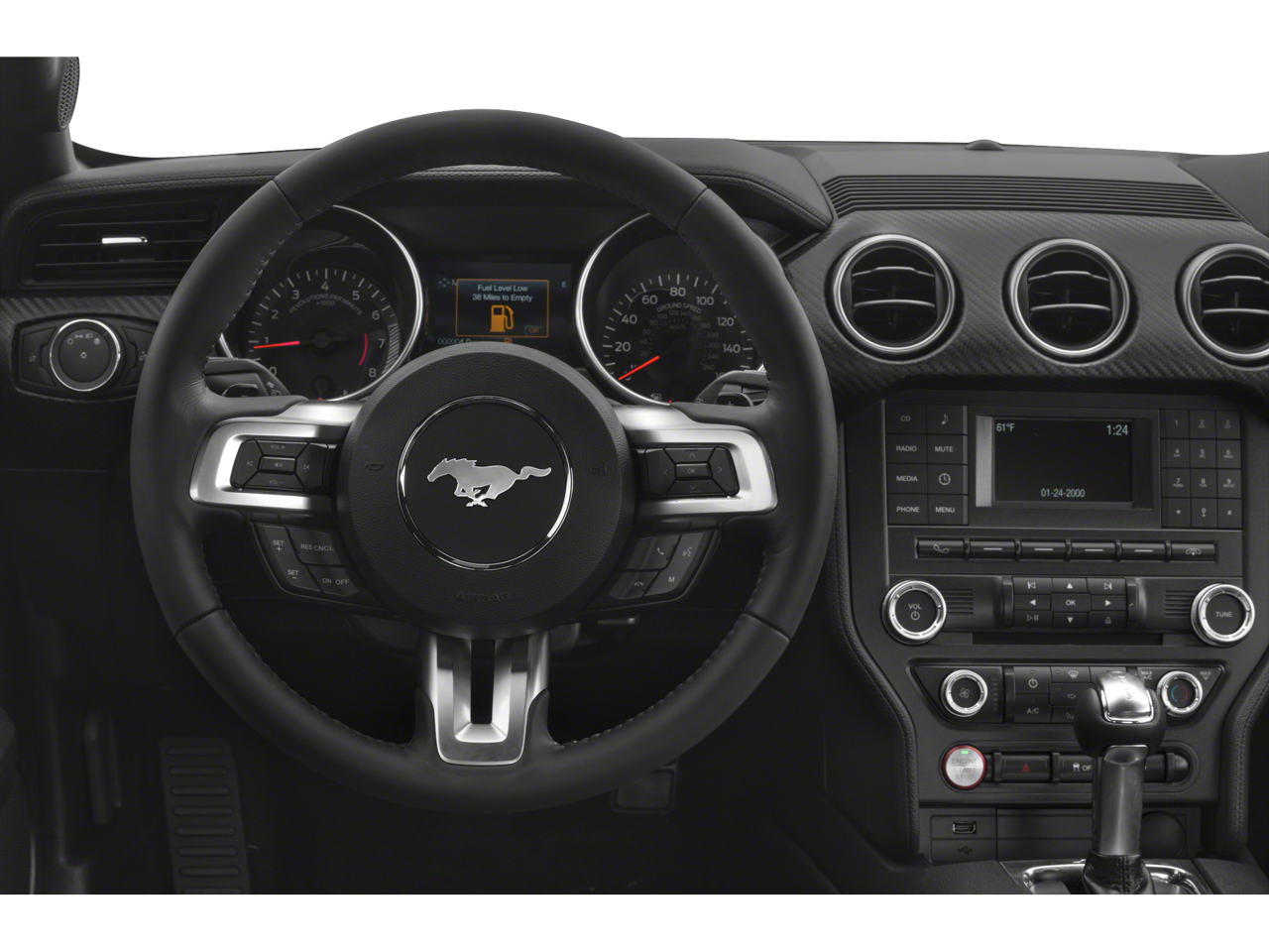 Step inside the Mustang's cockpit and experience a blend of sporty style and everyday comfort. The EBONY CLOTH BUCKET SEATS provide excellent support and a comfortable driving position, perfect for long journeys or spirited drives. The Dual Climate Control ensures that both you and your passenger can enjoy personalized comfort, regardless of the weather. The Leather Steering Wheel adds a touch of luxury and provides a confident grip. The Power Driver Seat allows you to find your ideal driving position with ease, while the cruise control makes highway driving more relaxed. The convenient Keyless Entry and Keyless Start systems get you on your way faster. The Mustang's interior is designed with attention to detail, creating a driver-focused environment that enhances the overall driving experience.