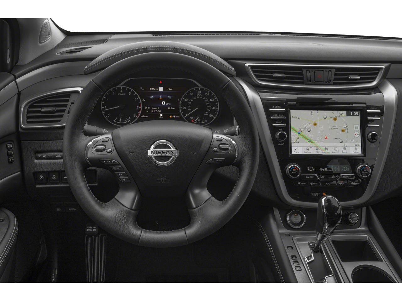 Step inside the 2021 Nissan Murano SV FWD and experience a comfortable and refined interior. The cloth front seat upholstery provides a welcoming touch, while the power driver seat with 8-way directional controls allows you to find the perfect driving position. The dual-zone front climate control ensures personalized comfort for both driver and passenger, and rear passengers will appreciate the rear console climate control ducts. The leather steering wheel adds a touch of luxury, and the remote engine start allows you to pre-condition the cabin before you even step inside. With features like power door locks, power windows, and keyless entry, convenience is always at your fingertips. The Cargo Package adds practical features like a Cargo Area Protector, Retractable Cargo Cover, Cargo Net, and First Aid Kit.