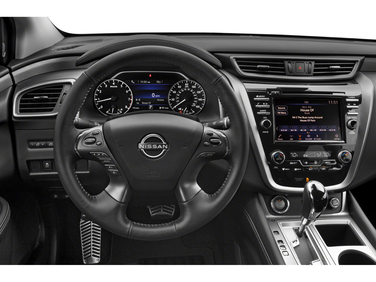 Inside, the Murano offers Graphite Leatherette-appointed seats that provide both luxury and comfort, with heated front seats to keep you warm on crisp mornings. The dual-zone automatic climate control ensures comfort for everyone, no matter the season. With 10 beverage holders and ample cargo space, this SUV is ready for family road trips or a day out with friends.