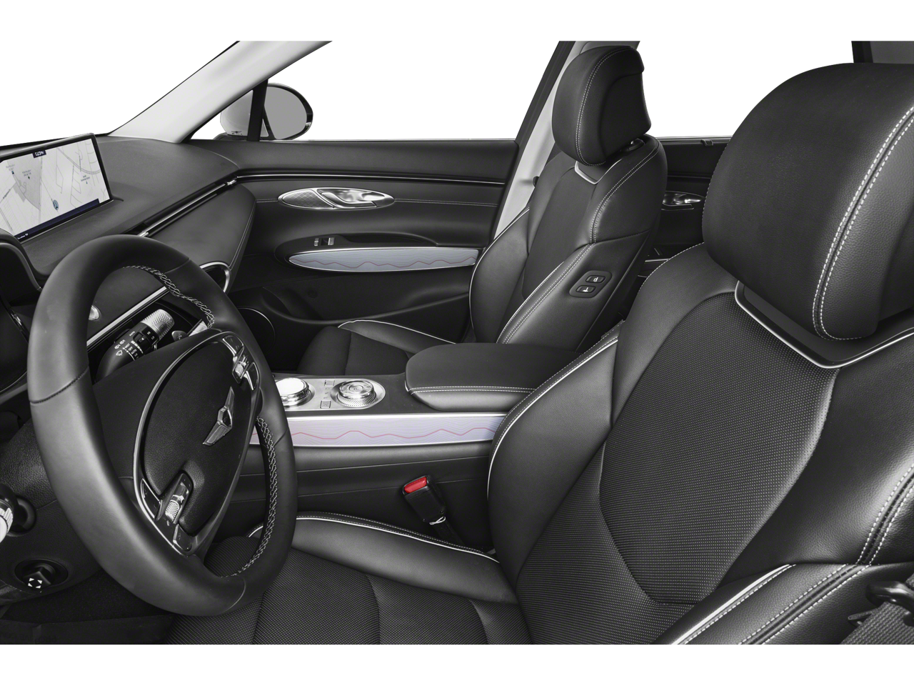 Step inside the 2025 Genesis GV70 and experience a world of refined comfort and sophisticated design. The BLACK/BLACK LEATHERETTE SEATING SURFACES offer a luxurious feel, while the Heated front seats provide warmth and comfort during cooler months. The Dual-zone front climate control ensures that both driver and passenger can enjoy their preferred temperature settings. The Power driver seat with adjustable lumbar support allows you to find the perfect driving position, while the Power passenger seat offers similar comfort for your co-pilot. Enjoy the convenience of Keyless Entry and Remote Engine Start, making every journey effortless. The Power Liftgate provides easy access to the cargo area, and the Rear console climate control ducts ensure that rear passengers stay comfortable as well. The leather-wrapped steering wheel adds a touch of elegance, while the metal-look interior accents enhance the overall ambiance.