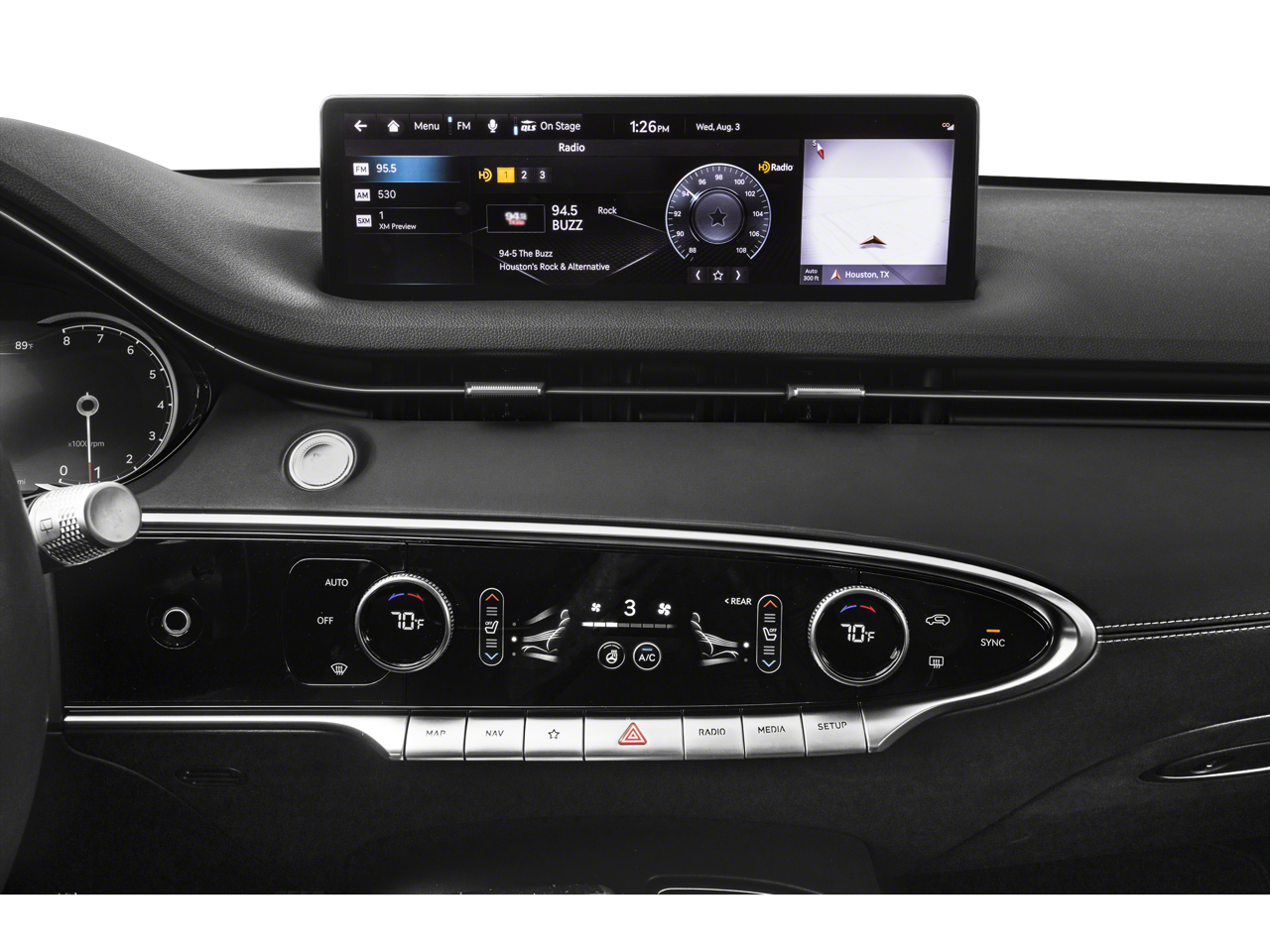 Stay connected and entertained on every journey with the advanced technology features of the 2025 Genesis GV70. Seamlessly integrate your smartphone with Android Auto & Apple CarPlay, allowing you to access your favorite apps, music, and contacts with ease. The Integrated navigation system with voice activation ensures you'll always find your way, whether you're exploring new destinations or navigating familiar routes around Tupelo. Enjoy crystal-clear audio through the premium sound system, and keep your devices charged with the convenient Wireless device charging pad. The expansive 14.5 inch primary display touchscreen offers intuitive control over the vehicle's many features, while the Gauge cluster display size: 8.00 provides essential information at a glance.